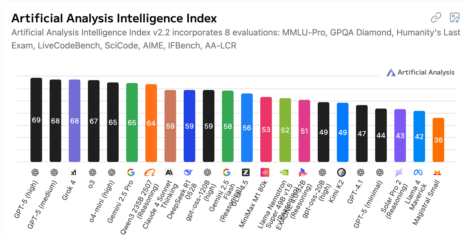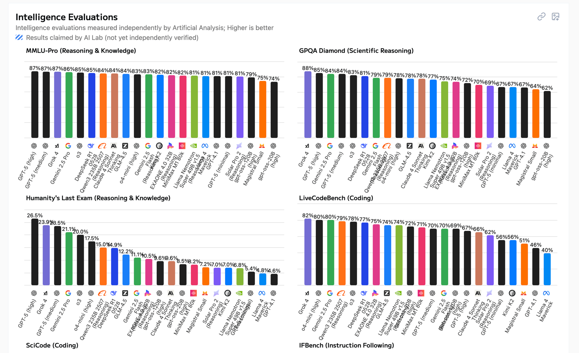 (For all the diagrams in this piece, remember that 'benchmaxxing' occurs. Model companies know the popular benchmarks and their incentive is to score as highly as possible on them. In the case of Meta’s Llama 4, even training explicitly on test sets)