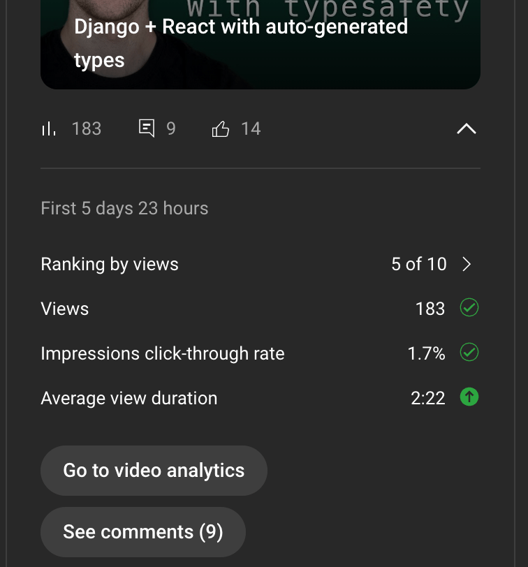 In case interested, here are the latest stats for the video. Cool to see that % watch time is up.